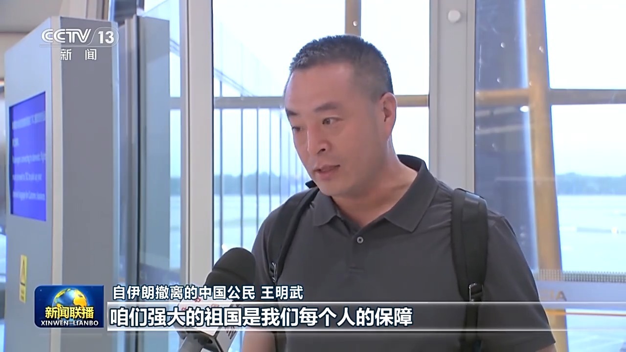 自伊朗撤离的中国公民 王明武:我们能平安顺利回来,咱们强大的祖国是我们每个人的保障,这个印象是深深地烙在我们每个人的心里面。